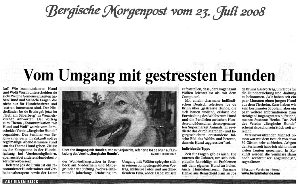Weitere aktuelle Medienberichte über unser neues Wolfsrudel:
