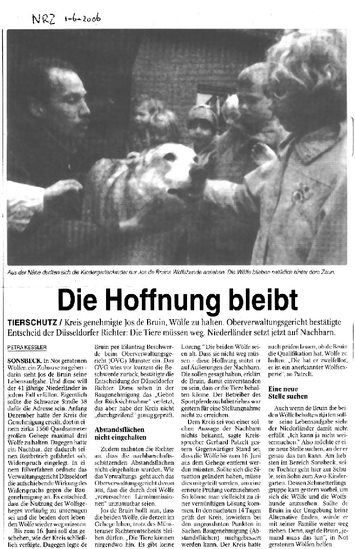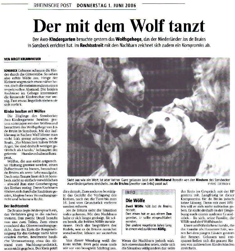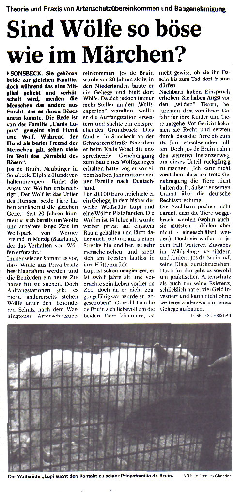 Haltener Zeitung: Wolfspärchen findet neues Zuhause (24.12.2010)